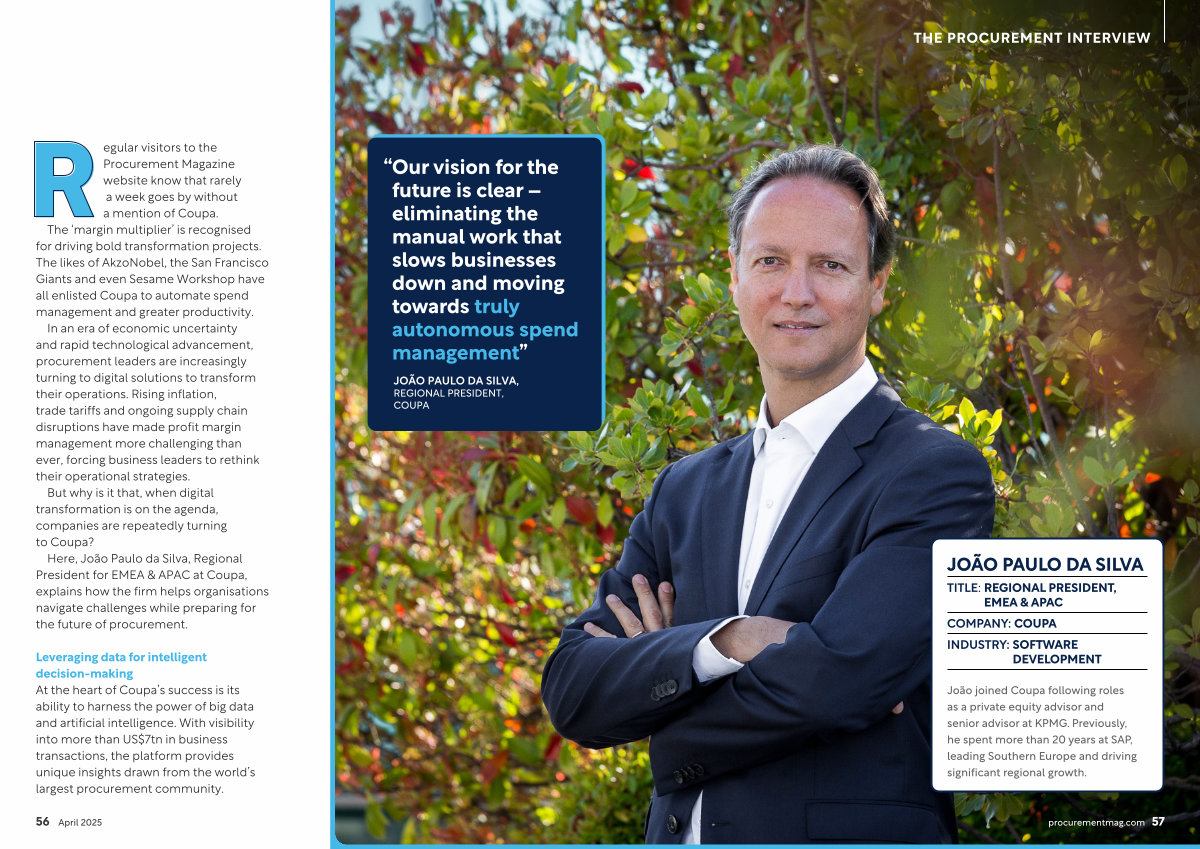 Here, João Paulo da Silva, Regional President for EMEA & APAC at Coupa, explains how the firm helps organisations navigate challenges while preparing for the future of procurement.