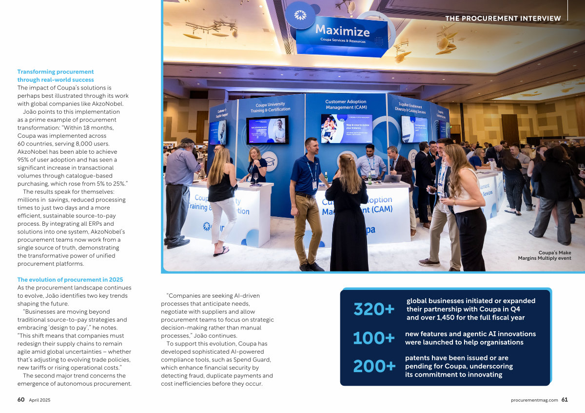 patents have been issued or are pending for Coupa, underscoring its commitment to innovating procurementmag. com 61