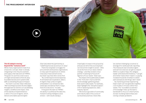 The team is excited. Dean reflected,“ We’ re working to position AI and a digitalfirst approach to work for us in accelerating insights, workflow and impact. One of the standout implementations is dSilo’ s Procure AI Agents, which deliver actionable spend insights.