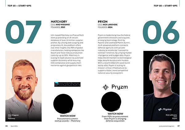 Ulm-based Matchory is a ProcureTech startup providing an AI-driven database of over 14 million supplier profiles. By utilising web scraping and proprietary AI, the platform offers real-time insights into 98 % of global manufacturers, helping companies like Bosch and Tesla reduce production costs by up to 50 %. Matchory is scaling its SaaS solution to automate supplier discovery while ensuring ESG compliance and supply chain resilience against geopolitical risks.
