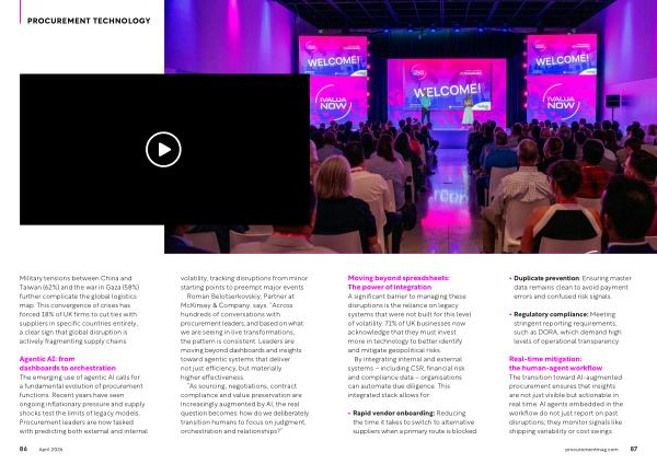Real-time mitigation: the human-agent workflow The transition toward AI-augmented procurement ensures that insights are not just visible but actionable in real time. AI agents embedded in the workflow do not just report on past disruptions; they monitor signals like shipping variability or cost swings.