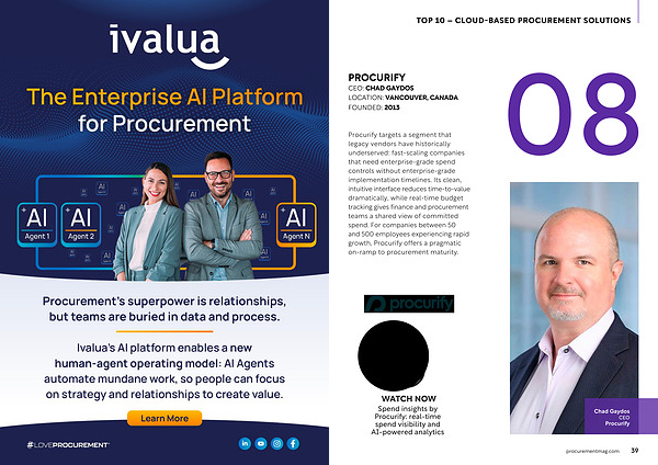 Ivalua’ s AI platform enables a new human-agent operating model: AI Agents automate mundane work, so people can focus on strategy and relationships to create value.