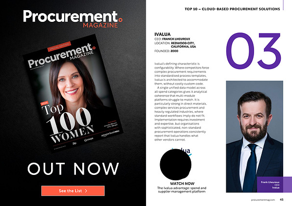 Ivalua’ s defining characteristic is configurability. Where competitors force complex procurement requirements into standardised process templates, Ivalua is architected to accommodate them, without costly custom code.