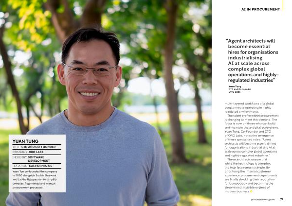 The talent profile within procurement is changing to meet this demand. The focus is now on those who can build and maintain these digital ecosystems. Yuan Tung, Co-Founder and CTO of ORO Labs, notes the emergence of these specialised roles:“ Agent architects will become essential hires for organisations industrialising AI at scale across complex global operations and highly-regulated industries.” These architects ensure that while the technology is complex, the interface remains simple. By prioritising the internal customer experience, procurement departments are finally shedding their reputation for bureaucracy and becoming the streamlined, invisible engines of modern business. procurementmag. com