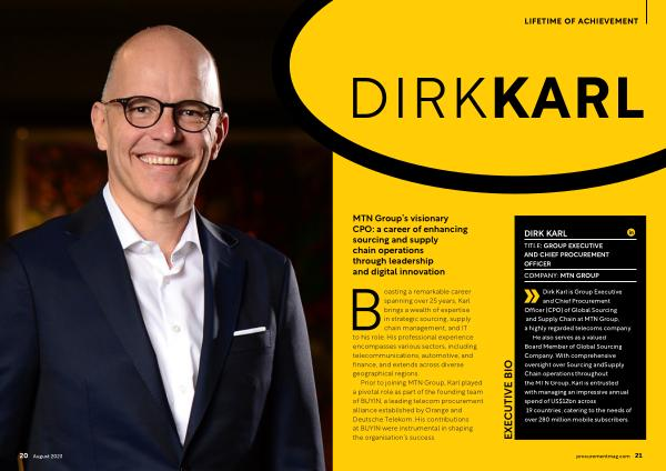 Dirk Karl is Group Executive and Chief Procurement Officer ( CPO ) of Global Sourcing and Supply Chain at MTN Group , a highly regarded telecoms company .