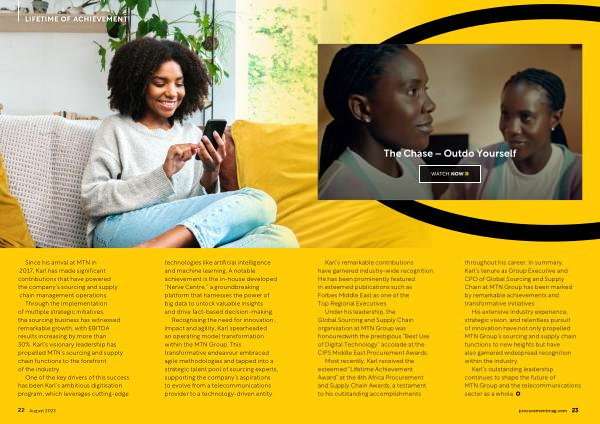 Through the implementation of multiple strategic initiatives , the sourcing business has witnessed remarkable growth , with EBITDA results increasing by more than 30 %. Karl ’ s visionary leadership has propelled MTN ’ s sourcing and supply chain functions to the forefront of the industry .