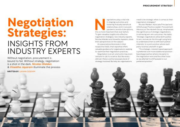 Nicolas Walden , Associate Principal and UK & Europe Practice Leader , Procurement Advisory at The Hackett Group , emphasises the significance of strategic negotiations in achieving win-win outcomes . He states , “ Strategic negotiations allow both parties to win , and we do this through using facts to understand , then to shift each parties ’ interests , to a joint position where each party receives a benefit or gain .
