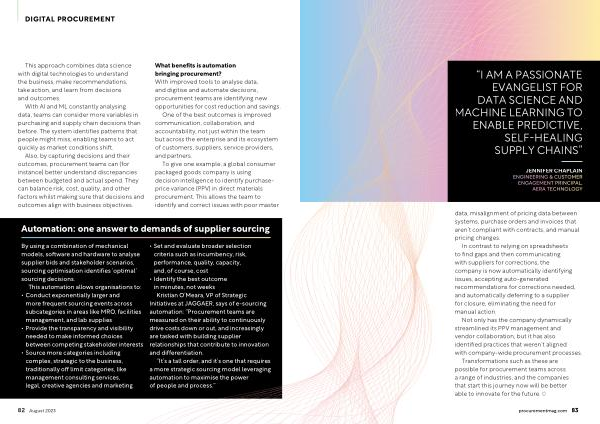 What benefits is automation bringing procurement ? With improved tools to analyse data , and digitise and automate decisions , procurement teams are identifying new opportunities for cost reduction and savings .