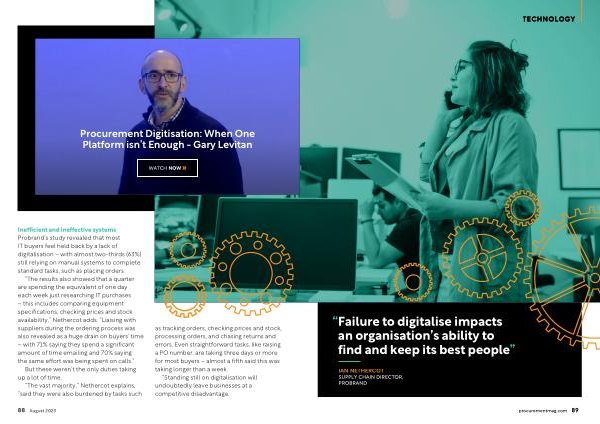 Inefficient and ineffective systems Probrand ’ s study revealed that most IT buyers feel held back by a lack of digitalisation – with almost two-thirds ( 63 %) still relying on manual systems to complete standard tasks , such as placing orders .