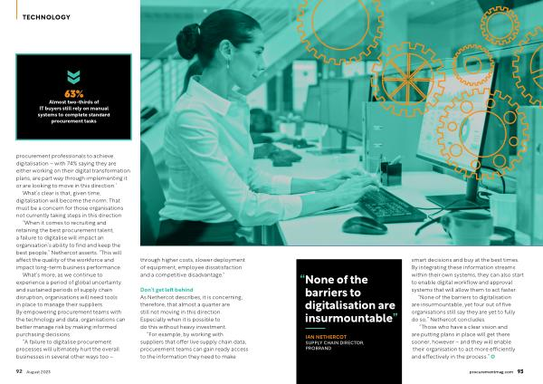 “ A failure to digitalise procurement processes will ultimately hurt the overall businesses in several other ways too – through higher costs , slower deployment of equipment , employee dissatisfaction and a competitive disadvantage .”