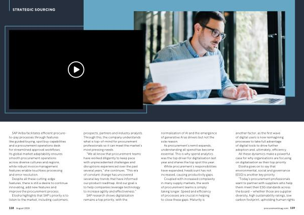 “ We all know that procurement teams have worked diligently to keep pace with unprecedented challenges and disruptions experienced over the past several years ,” she continues . “ This era of constant change has uncovered several key trends that have informed our product roadmap . And our goal is to help companies leverage technology to increase agility and effectiveness .” SAP research shows digitalisation remains a top priority , with the