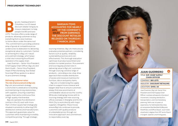 Juan Guerrero – Senior Vice President , Chief Supply Chain Officer , Big Lots and Kevin Kuehl – Senior Vice President , Head of Merchandising , Asia Global Sourcing Offices spoke to us about its procurement strategy .