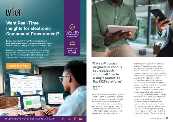 Lytica ’ s SupplyLens™ Pro platform stands alone as the world ’ s only provider of electronic component spend analytics and risk intelligence using real customer data .