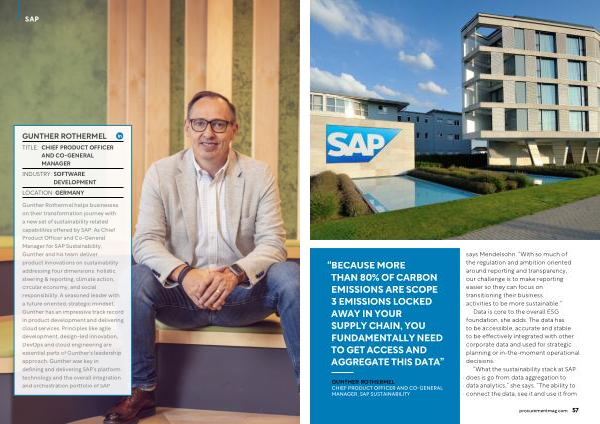 GUNTHER ROTHERMEL CHIEF PRODUCT OFFICER AND CO-GENERAL MANAGER , SAP SUSTAINABILITY says Mendelsohn . “ With so much of the regulation and ambition oriented around reporting and transparency , our challenge is to make reporting easier so they can focus on transitioning their business activities to be more sustainable .”