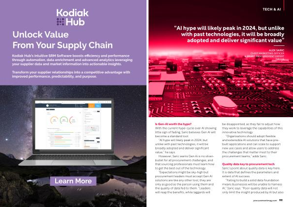 “ Organisations should adopt flexible and extensible AI solutions that have prebuilt applications and can scale to support new use cases and allow users to address the challenges that matter most to their procurement teams ,” adds Saric .