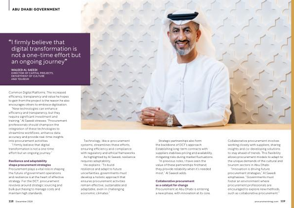 “ Innovation is driving future procurement strategies ,” Al Saeedi emphasises . “ Governments must foster an environment where procurement professionals are encouraged to explore new methods , such as collaborative procurement .”