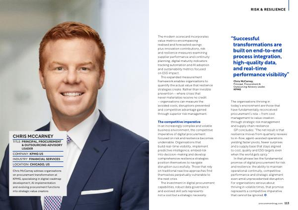 Chris McCarney advises organisations on procurement transformation at KPMG, specialising in digital roadmap development, AI implementation and evolving procurement functions into strategic value creators.