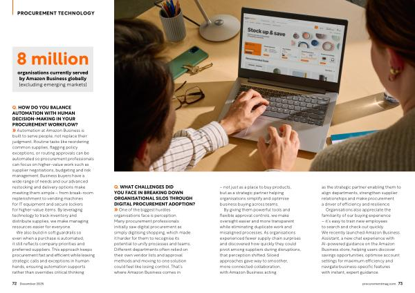 By giving them powerful tools and flexible approval controls, we make oversight easier and more transparent while eliminating duplicate work and misaligned processes. As organisations experienced fewer supply chain surprises and discovered how quickly they could pivot among suppliers during disruptions, that perception shifted. Siloed approaches gave way to smoother, more connected collaboration, with Amazon Business acting as the strategic partner enabling them to align departments, strengthen supplier relationships and make procurement a driver of efficiency and resilience.