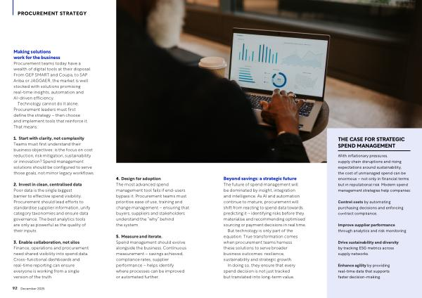 Beyond savings: a strategic future The future of spend management will be dominated by insight, integration and intelligence. As AI and automation continue to mature, procurement will shift from reacting to spend data towards predicting it – identifying risks before they materialise and recommending optimised sourcing or payment decisions in real time.