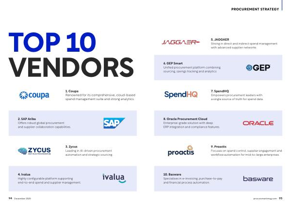 10. Basware Specialises in e-invoicing, purchase-to-pay and financial process automation. procurementmag. com 95