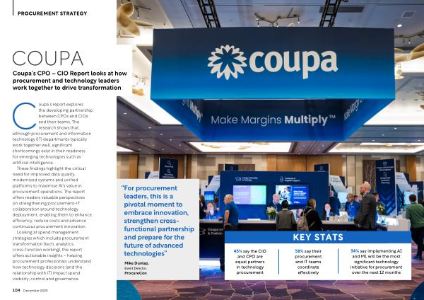 Coupa’ s CPO – CIO Report looks at how procurement and technology leaders work together to drive transformation