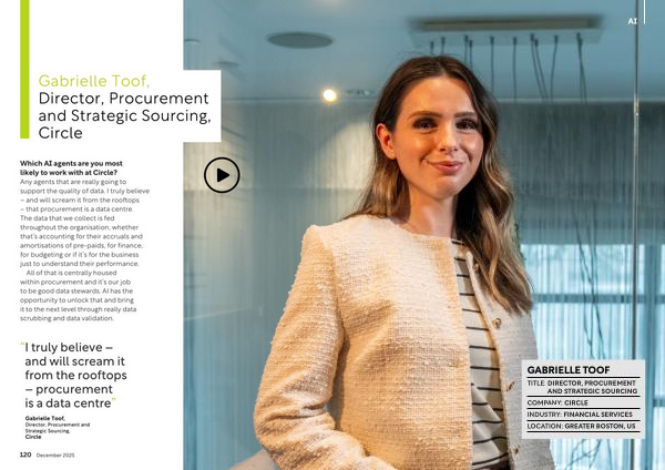 Which AI agents are you most likely to work with at Circle? Any agents that are really going to support the quality of data. I truly believe – and will scream it from the rooftops – that procurement is a data centre. The data that we collect is fed throughout the organisation, whether that’ s accounting for their accruals and amortisations of pre-paids, for finance, for budgeting or if it’ s for the business just to understand their performance.