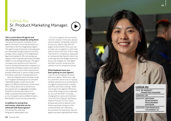 What feedback have you been getting on your agents? I cannot say enough good words about our agents. Whenever I talk to customers one to one or in group settings, people are so excited about our agents because they’ re seeing real ROIs and they’ re asking,“ when can we get more agents? What are some other things on the roadmap?” So, you can see that it’ s actually changing their whole environment. I love this from OpenAI: Kat [ Devlin, Head of Procure-to-Pay, Travel & Expense ] told me OpenAI is the fastest-growing company in the world and they can’ t afford for procurement to slow down. Zip’ s AI agents are what’ s getting them there.