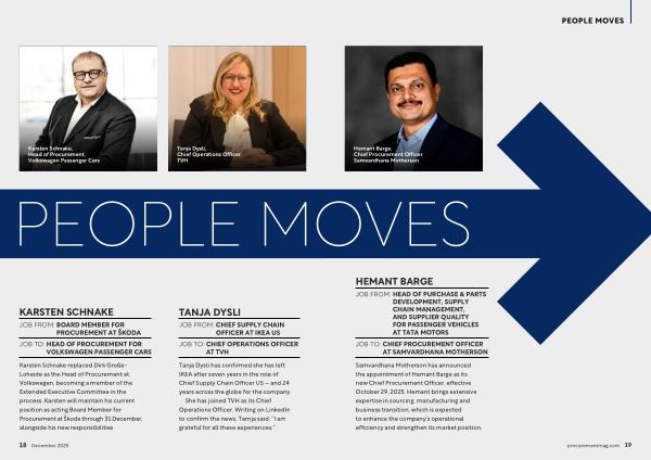 Karsten Schnake replaced Dirk Große- Loheide as the Head of Procurement at Volkswagen, becoming a member of the Extended Executive Committee in the process. Karsten will maintain his current position as acting Board Member for Procurement at Škoda through 31 December, alongside his new responsibilities.