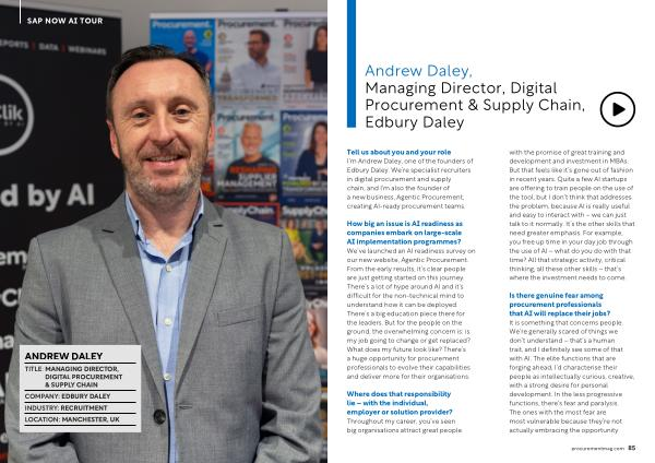 Tell us about you and your role I’ m Andrew Daley, one of the founders of Edbury Daley. We’ re specialist recruiters in digital procurement and supply chain, and I’ m also the founder of a new business, Agentic Procurement, creating AI-ready procurement teams.