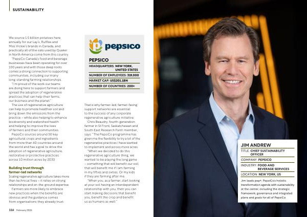 Jim leads pep +, PepsiCo’ s holistic transformation agenda with sustainability at the center, including the strategic framework, governance and integrated plans and goals for all of PepsiCo.