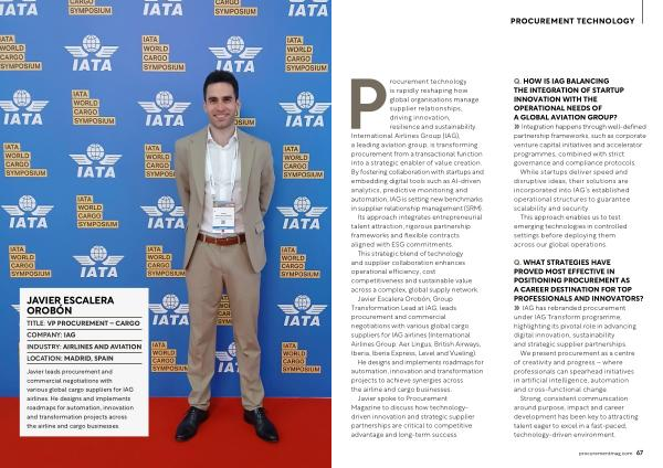 Javier spoke to Procurement Magazine to discuss how technologydriven innovation and strategic supplier partnerships are critical to competitive advantage and long-term success.