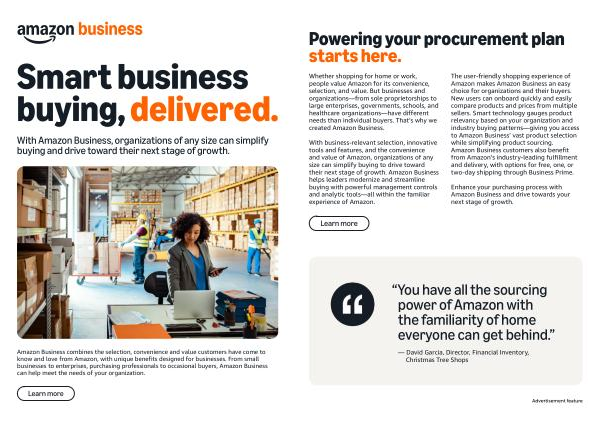 Enhance your purchasing process with Amazon Business and drive towards your next stage of growth.“ You have all the sourcing power of Amazon with the familiarity of home everyone can get behind.”
