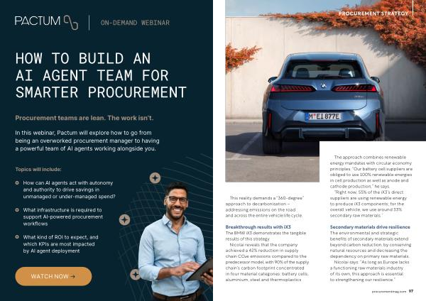 In this webinar, Pactum will explore how to go from being an overworked procurement manager to having a powerful team of AI agents working alongside you.