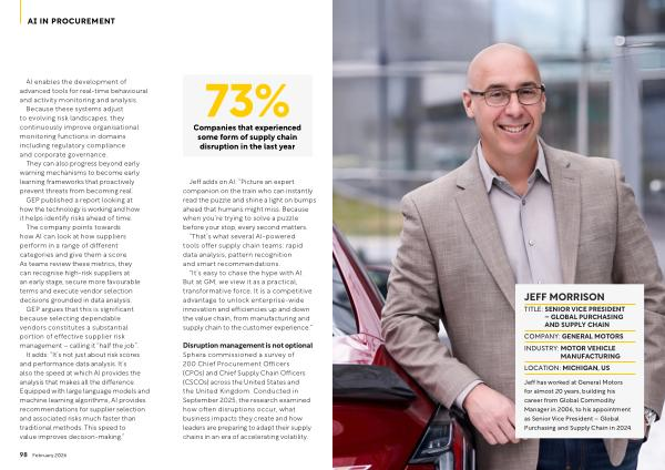 Jeff has worked at General Motors for almost 20 years, building his career from Global Commodity Manager in 2006, to his appointment as Senior Vice President – Global Purchasing and Supply Chain in 2024.