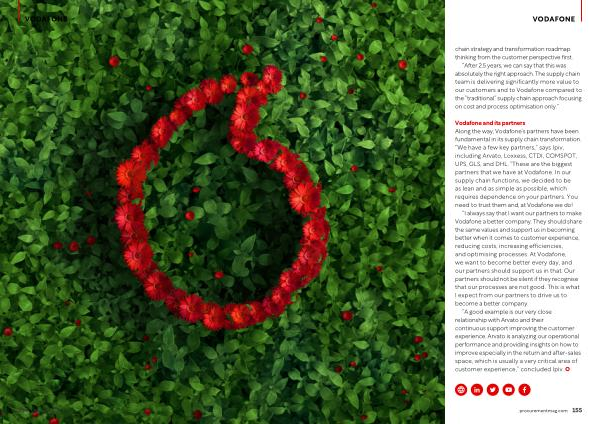 Vodafone and its partners Along the way , Vodafone ’ s partners have been fundamental in its supply chain transformation . “ We have a few key partners ,” says Ipiv , including Arvato , Loxxess , CTDI , COMSPOT , UPS , GLS , and DHL . “ These are the biggest partners that we have at Vodafone . In our supply chain functions , we decided to be as lean and as simple as possible , which requires dependence on your partners . You need to trust them and , at Vodafone we do !