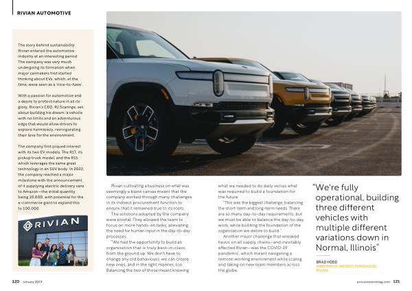 BRAD HOOD DIRECTOR OF INDIRECT PURCHASING , RIVIAN procurementmag . com 121