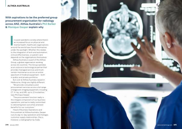 With aspirations to be the preferred group procurement organisation for radiology across ANZ , Althea Australia ’ s Phil Barber & Monique Gaspar explain why