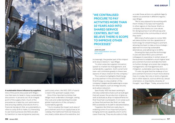 A sustainable future influence by suppliers One of the points discussed with Wilgar — one that rears its head in many sustainability discussions — is around cost . At an integral point of the supply chain , much of the precedence is taken by cost optimisation and ensuring viability of products from a financial standpoint . But , as sustainability is often a costly shift to make , it ’ s interesting to see how businesses like NSG are able to transition to new and greener pastures , particularly when , like NSG , 50 % of spend is tied in the upstream supply chain .