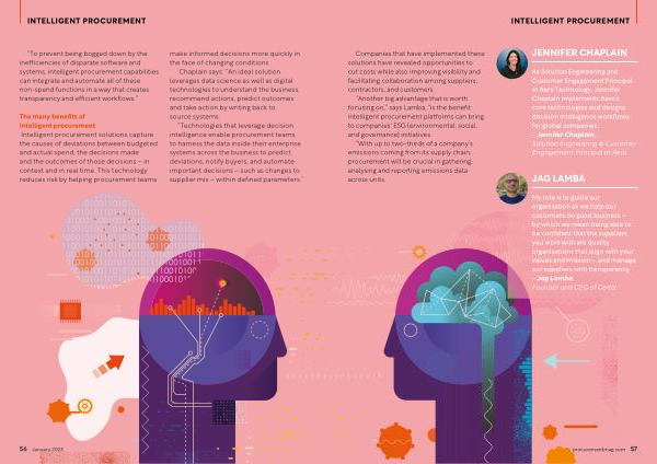 The many benefits of Intelligent procurement Intelligent procurement solutions capture the causes of deviations between budgeted and actual spend , the decisions made and the outcomes of those decisions – in context and in real time . This technology reduces risk by helping procurement teams make informed decisions more quickly in the face of changing conditions .