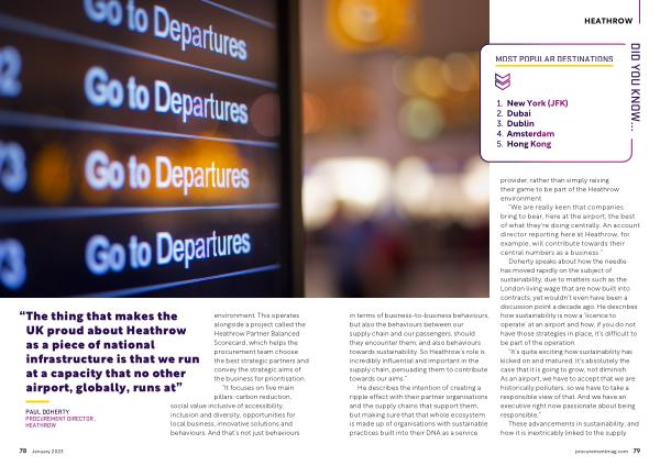 DID YOU KNOW ... in terms of business-to-business behaviours , but also the behaviours between our supply chain and our passengers , should they encounter them , and also behaviours towards sustainability . So Heathrow ’ s role is incredibly influential and important in the supply chain , persuading them to contribute towards our aims .”