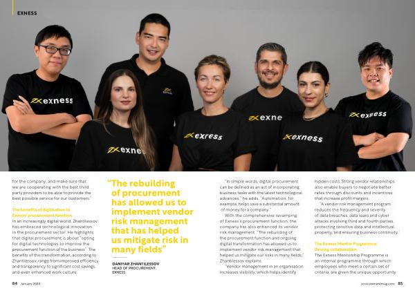 The benefits of digitisation to Exness ’ procurement function In an increasingly digital world , Zhantilessov has embraced technological innovation in the procurement sector . He highlights that digital procurement is about “ opting for digital technologies to improve the procurement function of the business ”. The benefits of this transformation , according to Zhantilessov , range from improved efficiency and transparency to significant cost savings , and even enhanced work culture .