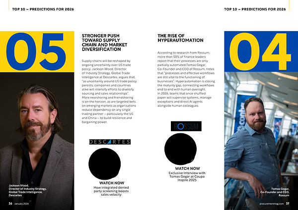 chains will be reshaped by ongoing uncertainty over US trade policy. Jackson Wood, Director of Industry Strategy, Global Trade Intelligence at Descartes, argues that,“ as uncertainty around US trade policy persists, companies and countries alike will intensify efforts to diversify sourcing and sales relationships”. More nearshoring and friendshoring is on the horizon, as are targeted bets on emerging markets as organisations reduce dependency on any single trading partner – particularly the US and China – to build resilience and bargaining power.