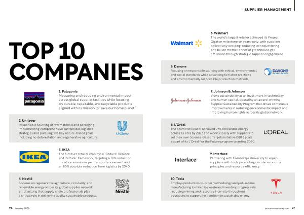 10. Tesla Employs production-to-order methodology and just-in-time manufacturing to minimize waste and inventory, progressively reducing mining and resource intensity throughout operations to support the transition to sustainable energy. procurementmag. com 97
