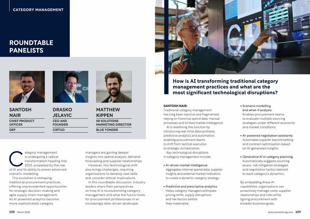 In this roundtable discussion , industry leaders share their perspectives on how AI is revolutionising category management and what the future holds for procurement professionals in an increasingly data-driven landscape .