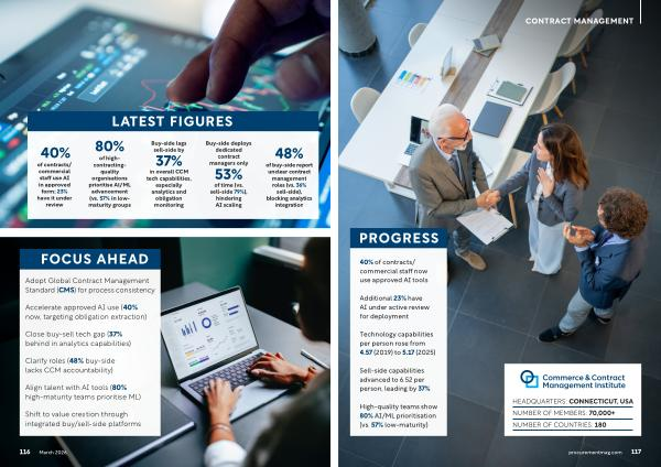 of contracts / commercial staff use AI in approved form; 23 % have it under review