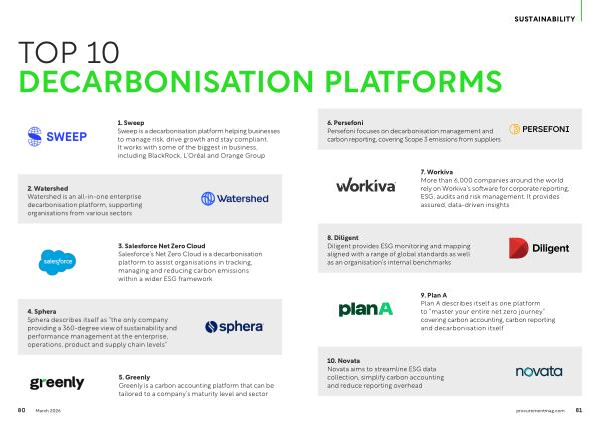 1. Sweep Sweep is a decarbonisation platform helping businesses to manage risk, drive growth and stay compliant. It works with some of the biggest in business, including BlackRock, L’ Oréal and Orange Group