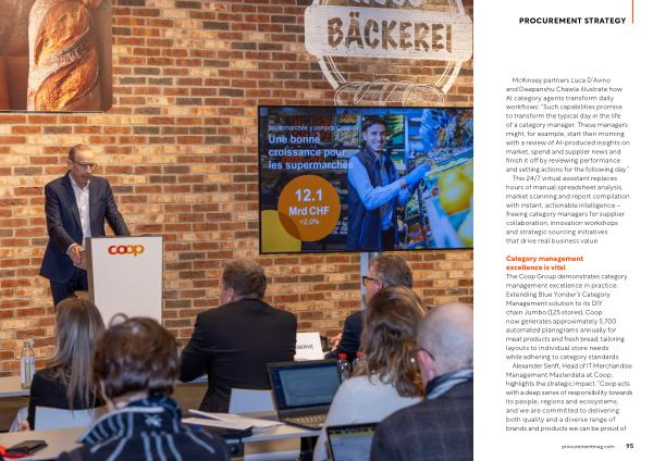 McKinsey partners Luca D’ Avino and Deepanshu Chawla illustrate how AI category agents transform daily workflows:“ Such capabilities promise to transform the typical day in the life of a category manager. These managers might, for example, start their morning with a review of AI-produced insights on market, spend and supplier news and finish it off by reviewing performance and setting actions for the following day.” This 24 / 7 virtual assistant replaces hours of manual spreadsheet analysis, market scanning and report compilation with instant, actionable intelligence – freeing category managers for supplier collaboration, innovation workshops and strategic sourcing initiatives that drive real business value.