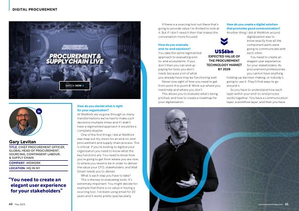 One of the first things I did at WeWork was map out my vision for an end-to-end procurement and supply chain process . This is critical . If you ’ re looking to digitise your organisation you need to know what the key functions are . You need to know how you ’ re going to get from where you are now , to where you need to be in order to deliver the value your CFO , stakeholders , and Wall Street needs you to deliver . What is each step you have to take ? This is the key to evaluating tools . It ’ s extremely important . You might decide for example that there is no value in having a sourcing tool . I ’ ve been using email for 20 years and it works pretty spectacularly .