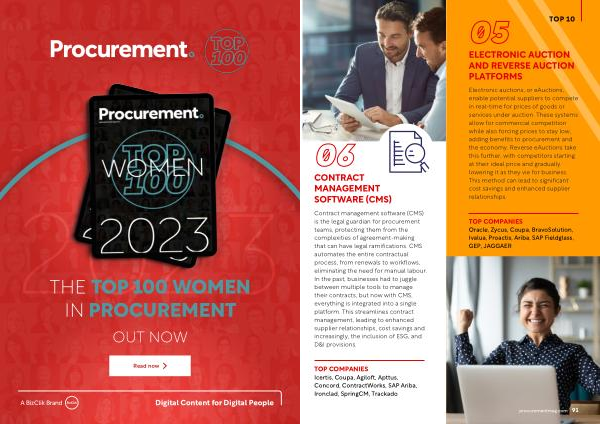 TOP COMPANIES Icertis , Coupa , Agiloft , Apttus , Concord , ContractWorks , SAP Ariba , Ironclad , SpringCM , Trackado procurementmag . com 91