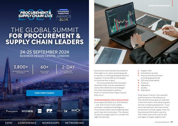 Understanding the risks in procurement Some label the 2020s as a ‘ VUCA World ’ – one that is much more volatile , uncertain , complex and ambiguous . Procurement teams are broadening their set of risks and risk domains . The Hackett Group encourages teams to consider the eight risk domains :